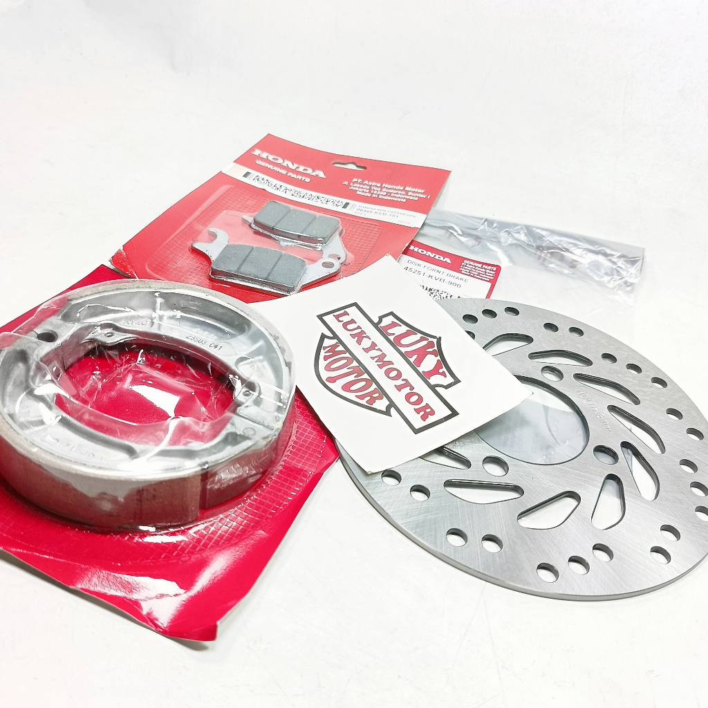 PAKET KOMPLIT KAMPAS REM DEPAN & KAMPAS REM BELAKANG & DISK PIRINGAN BEAT , SCOOPY , SPACY , VARIO , BEAT FI , ESP , POP , STREET , SCOOPY FI ESP , SPACY FI , VARIO 110 FI ESP , VARIO 125 TECHNO