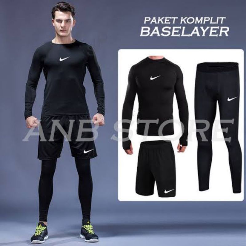 PAKET BAJU BASELAYER PRIA SETELAN MANSET LEGGING DAN CELANA FUTSAL OLAHRAGA SEPAK BOLA SEPEDA JOGGING GYM HIKING FITNESS