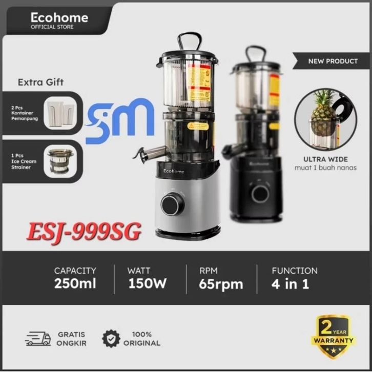 ECOHOME SLOW JUICER SIMPLICITY GRID ESJ-999SG PENGEKSTRAK BUAH MUAT 1 NANAS LOW WATT AND EASY CLEAN