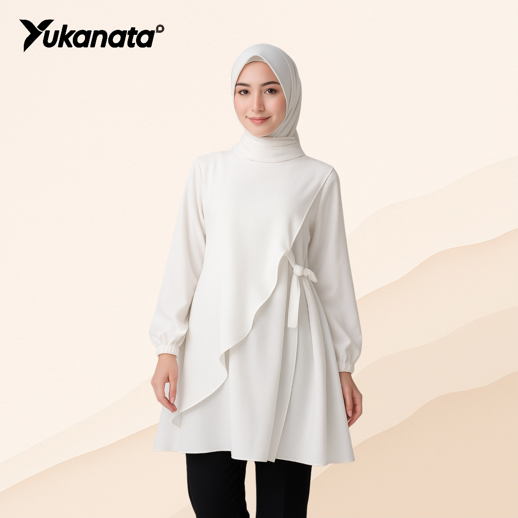 YUKANATA.ID - Tunik Elegan Ruffle Putih Anggun Modern Simple Stylish Fashion Muslimah Kekinian Matterial Crinkle