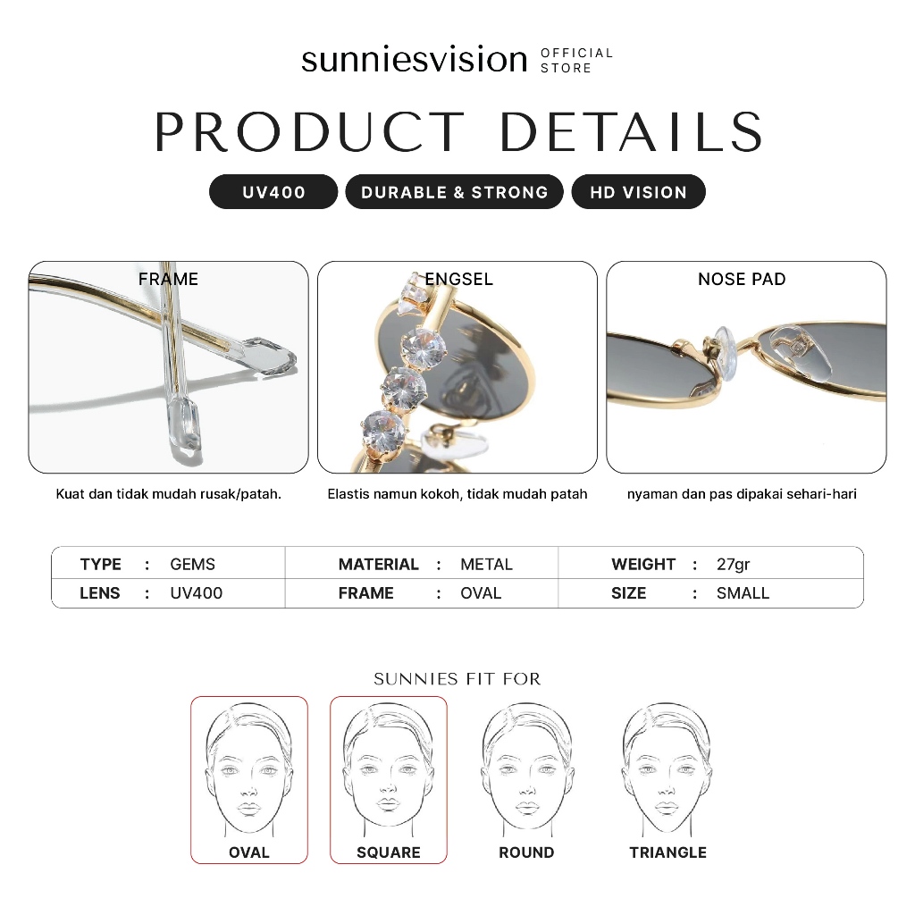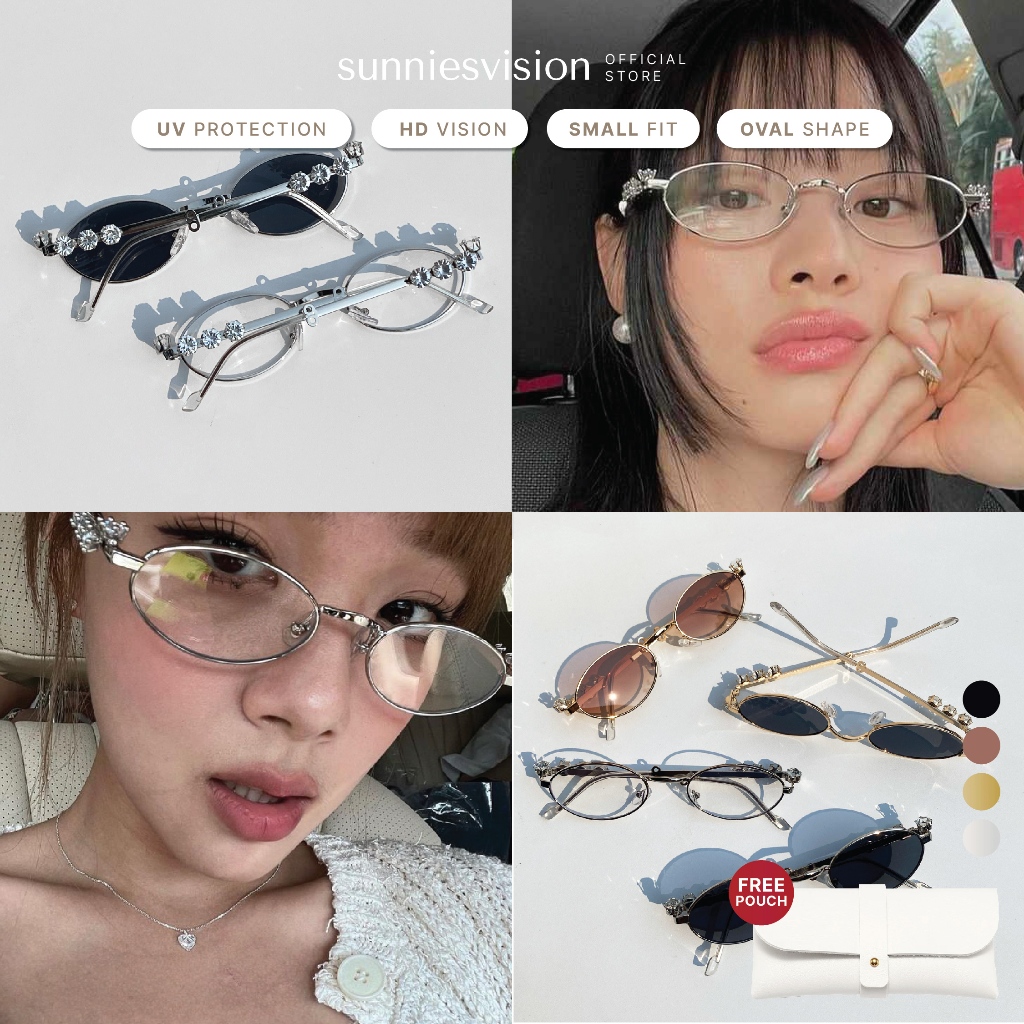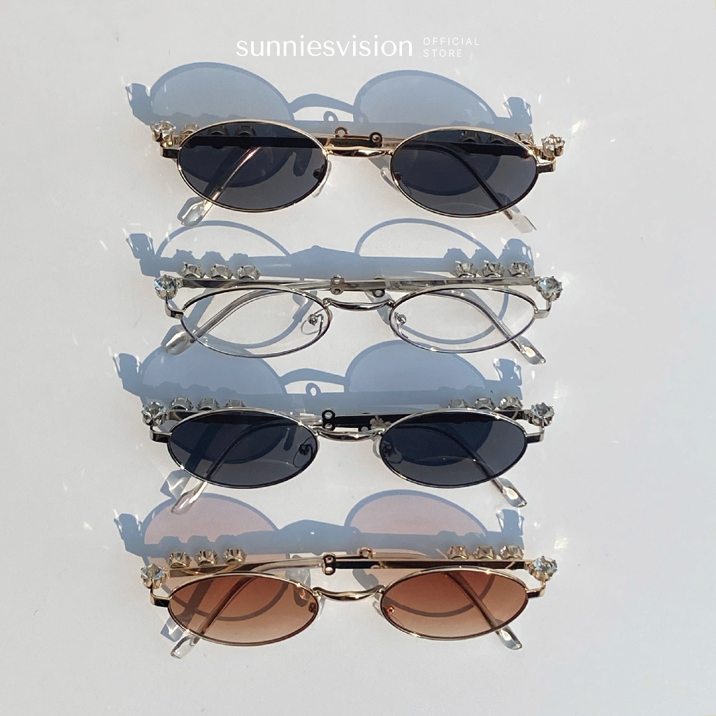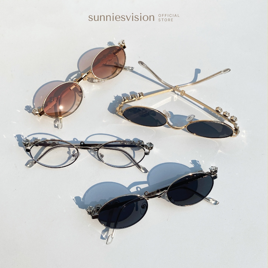 [FREE POUCH] Gems Sunnies Vision - Kacamata Hitam Cat Eye Unisex Fashion Wanita KPOP Y2K UV 400