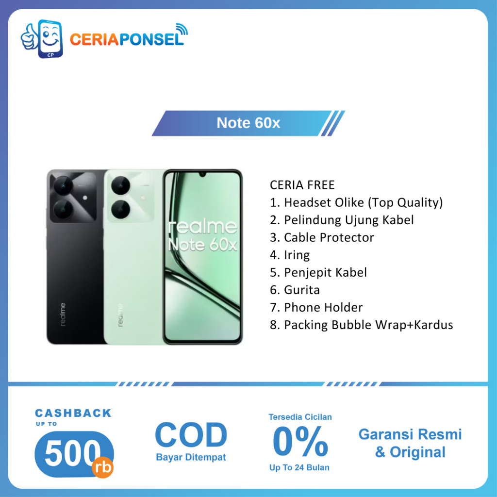 Realme Note 60x 4/64GB & 4/128GB UNISOC T612 5000mAh 10W | Garansi Resmi Realme Indonesia 1 Tahun