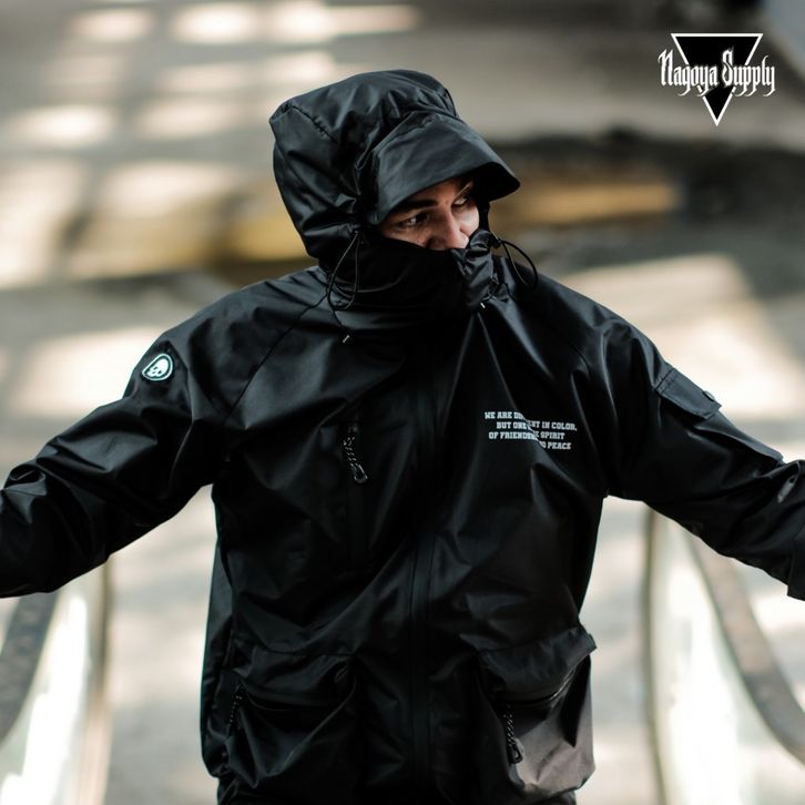 Nagoya Supply Jaket Gorpcore Waterproof Cowok Distro Keren Hitam BY ORIGINAL PRODUCT