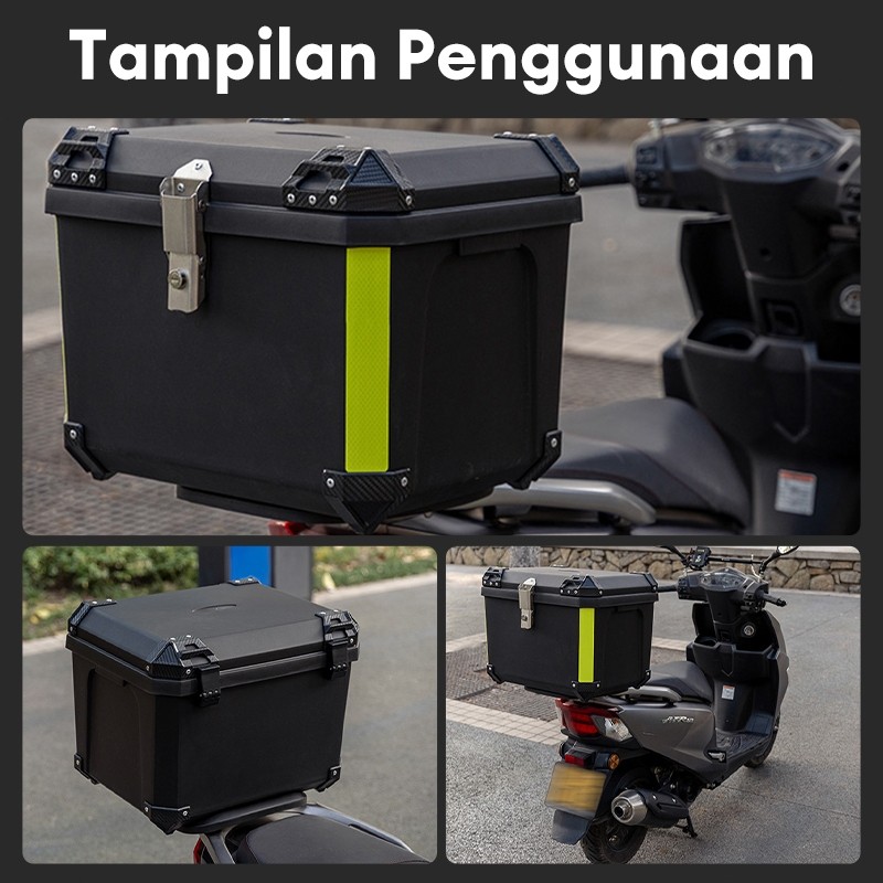 box motor belakang 45L untuk Kotak penyimpanan dengan lampu strip reflektif suku cadang bagasi bak truk sepeda motor tah