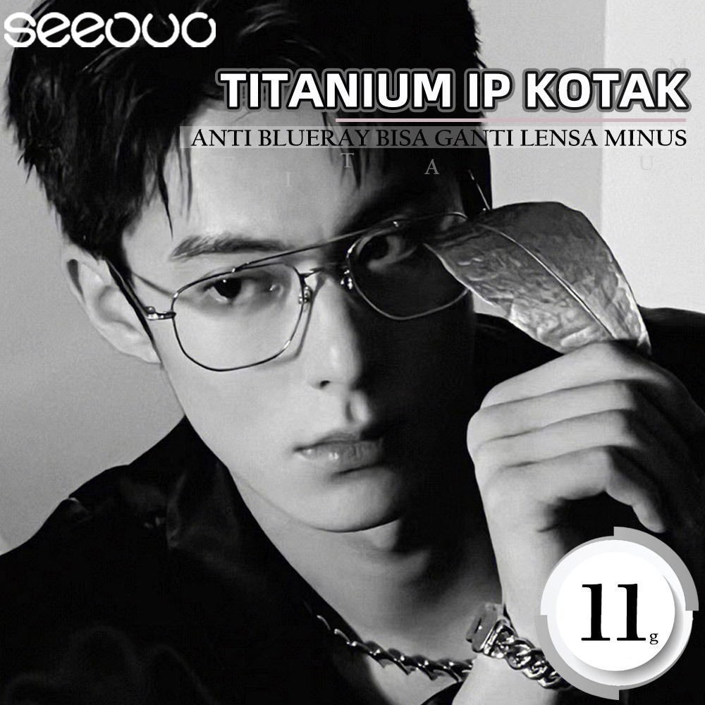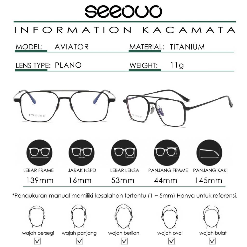 Seeouo Frame Kacamata Plano Lens Aviator Style Simple Elegan Bahan Titanium Ringan Pria Wanita Bisa Minus 20233