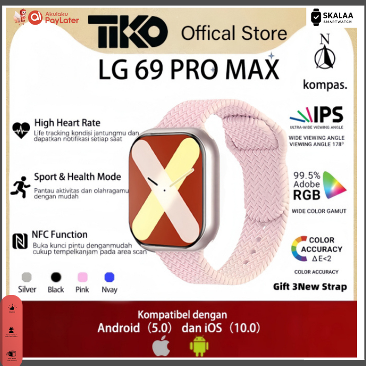 Smartwatch TIKO LG69 Pro Max Smartwatch NFC Support Bluetooth Call Custom Wallpaper Android IOS Jam Smartwatch Wanita Pr