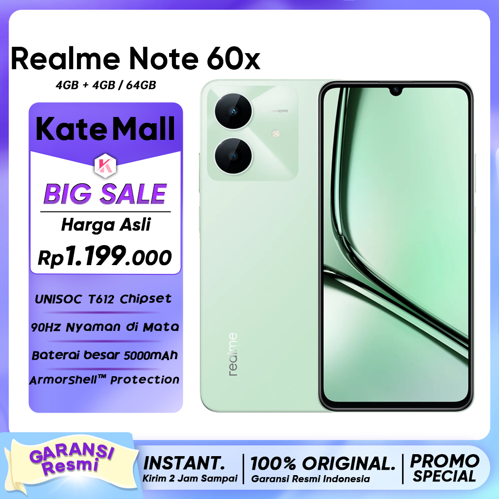 Realme Note 60x (4/64)(4/128) - Tahan Debu dan Percikan Air, 5000mAh Baterai Besar, Garansi Resmi