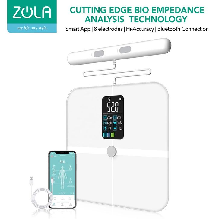 Terbaru ZOLA Timbangan Badan Digital Smart Body Scale BMI dan Body Fat Monitor 8 Sensor via Smartphone Body Scale Digit