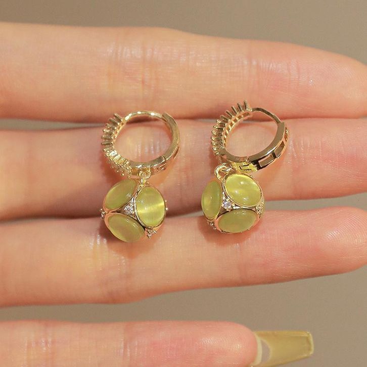 A3809 Anting Earrings Opal Hijau Baru Perhiasan Titanium Asli Ori Korean Style Cewek Wanita