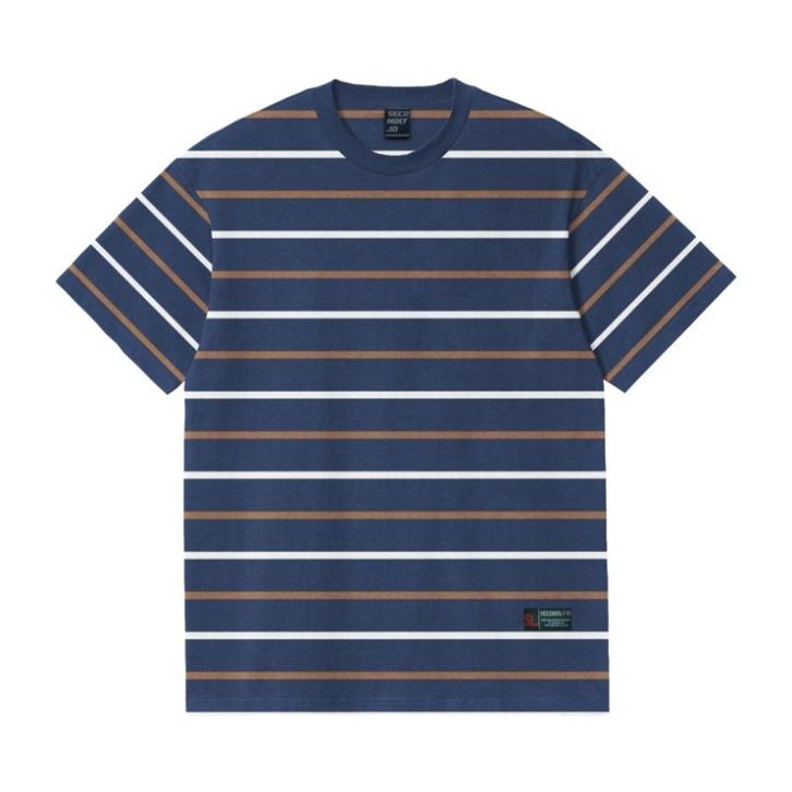 SECONDLY.ID Kaos Salur Lengan Pendek Jumbo T-Shirt Stripe Three Color Navy 24s BY ORIGINAL PRODUCT