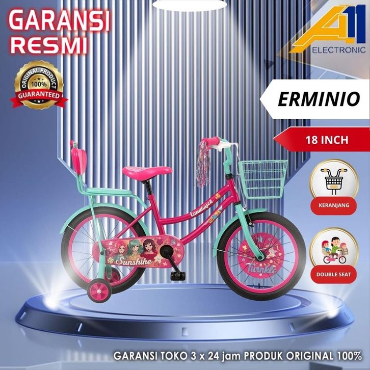 Sepeda Anak Perempuan Erminio 18 Inch With Keranjang Double Seat BY ORIGINAL PRODUCT