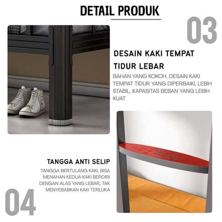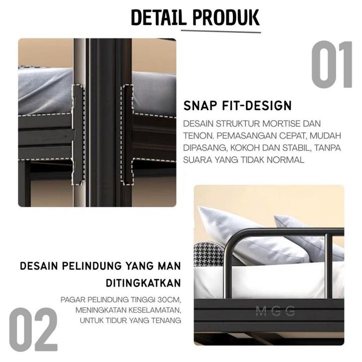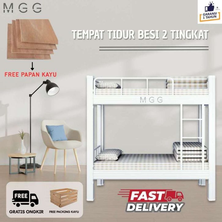 MGG Ranjang Tingkat Besi Bed Susun Minimalis Dipan Kasur Tingkat 2 Divan Susun 90x200 CM