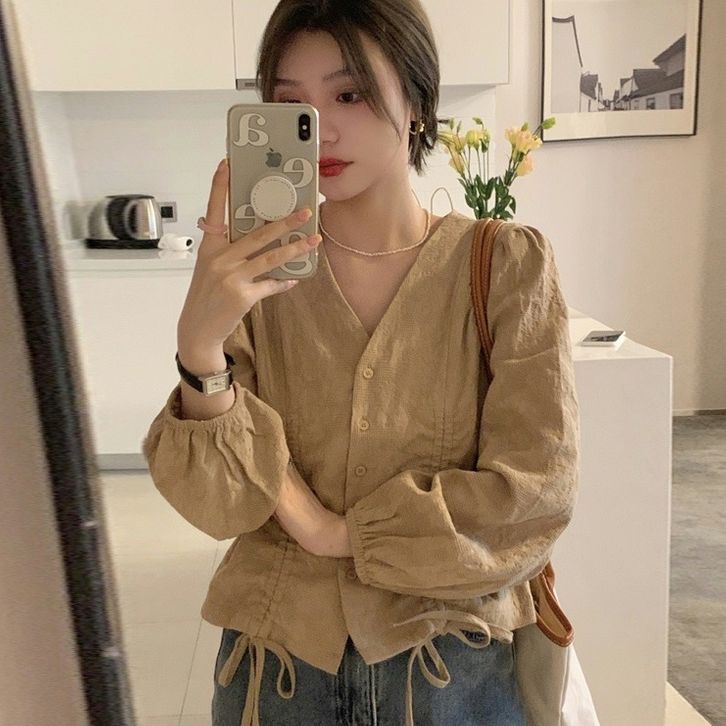 yikoo-Kemeja korea lengan panjang blouse wanita shirt atasan pakaian-DRESS