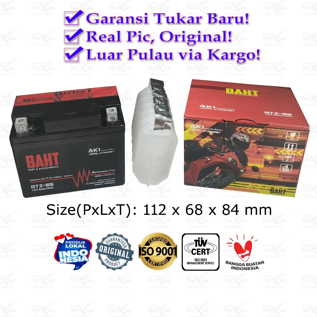 Aki Motor Baht GTZ-5S YTZ3 GTZ4V YTZ4V YTX4L YB4LA YB4LB GTZ5S YTZ5S BTZ5S 12V 5Ah Karisma Beat Mio