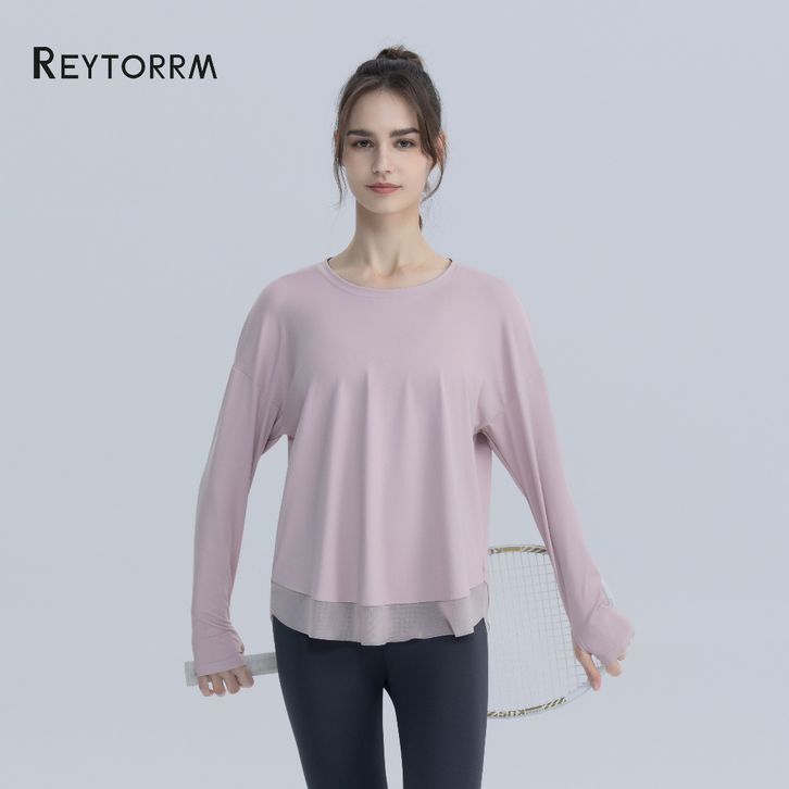 FREE ONGKIR Reytorrm Baju Olahraga Wanita Lengan Panjang Hijab Sport Kaos Long Sleeve T-Shirt Yoga Oversize(CX011)