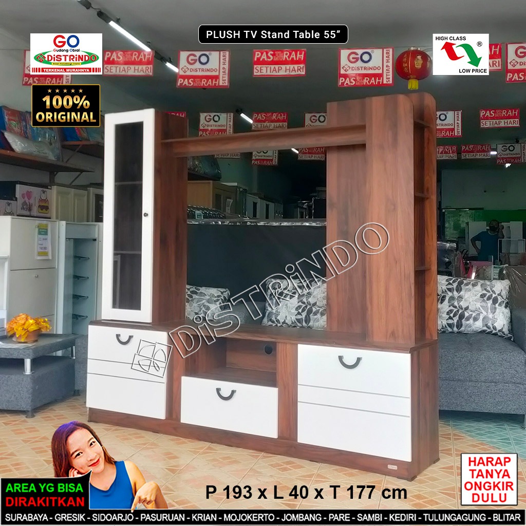 Termurah Bufet Rak Meja TV 45~55" Minimalis Modern Mewah Murah TEBAL dengan Lemari Hias Kaca + Laci Free Ongkir