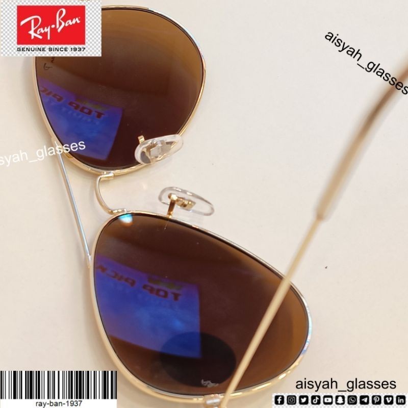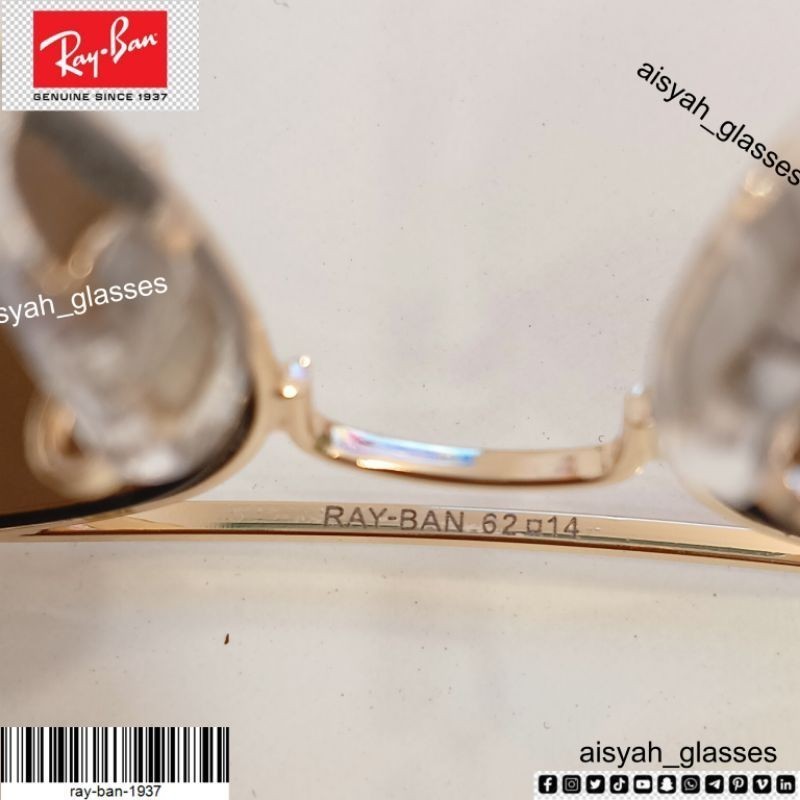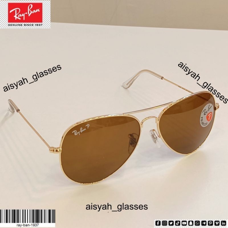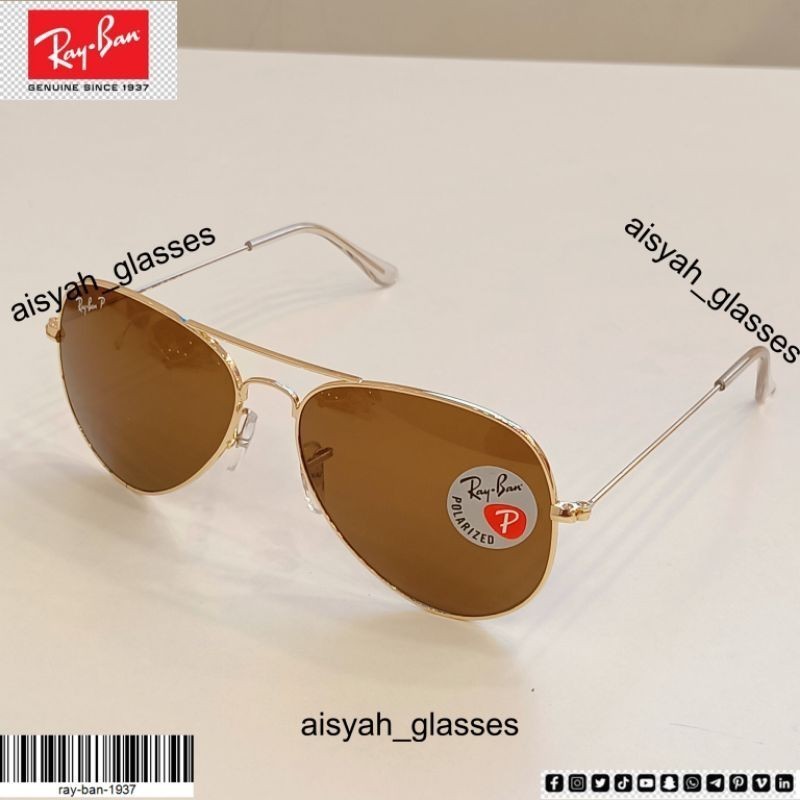 kacamata Ray-Ban aviator size 62 lensa kaca polarize clasik