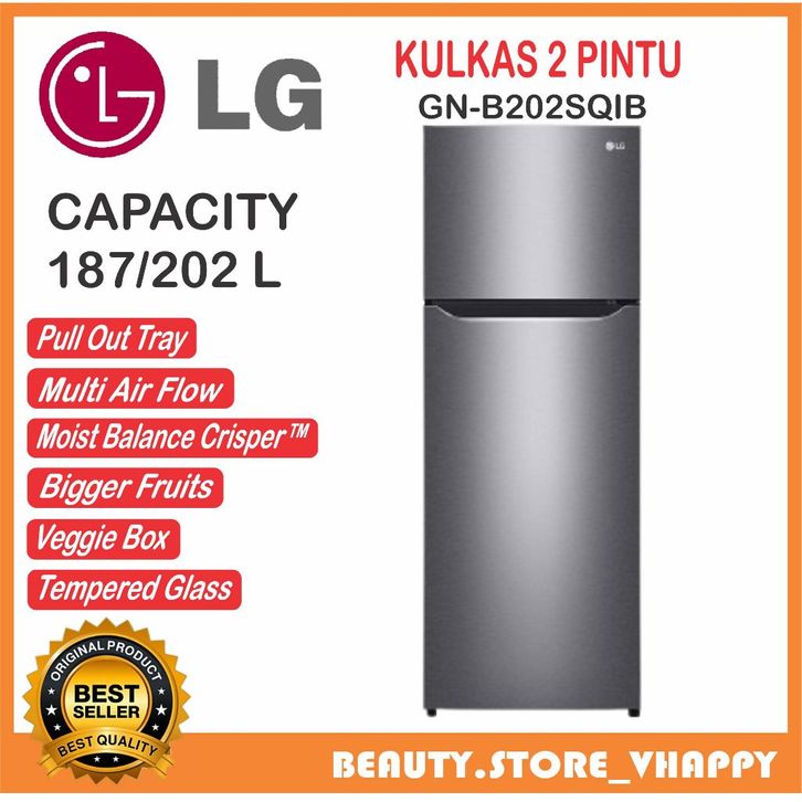 Kulkas LG 2 pintu Smart Inverter 202L Top Freezer Fridge in Dark Graphite Steel GN-B202SQIB