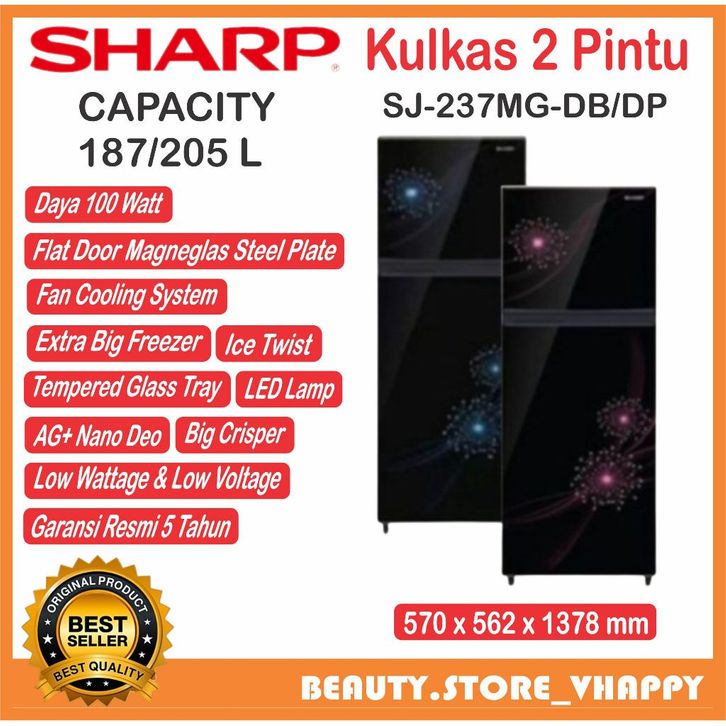 Kulkas sharp 2 Pintu sj 237 mg/ 187 Liter Garansi Resmi Khusus bandung dan luar bandung