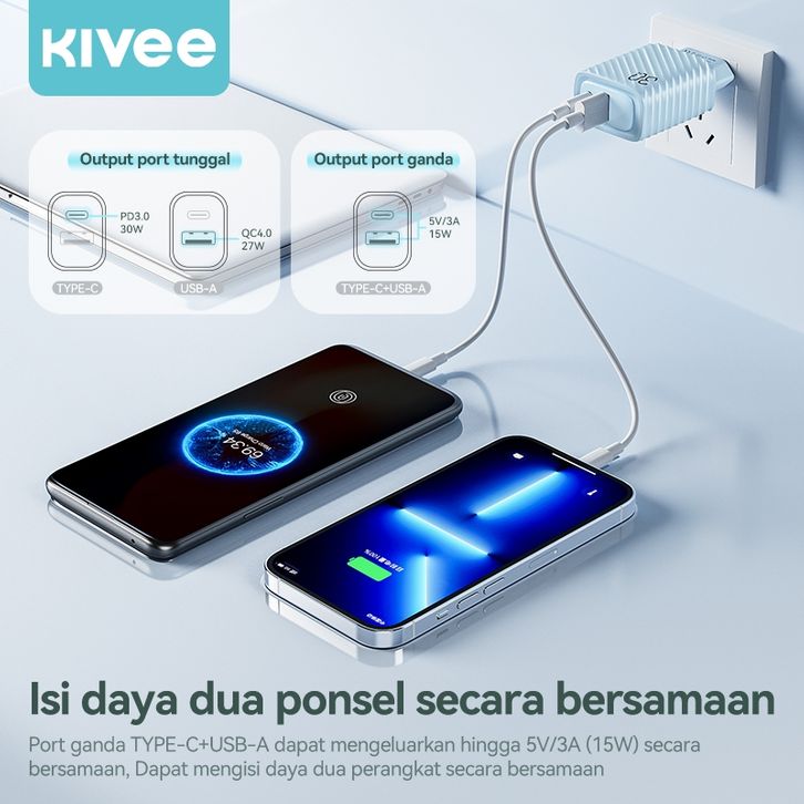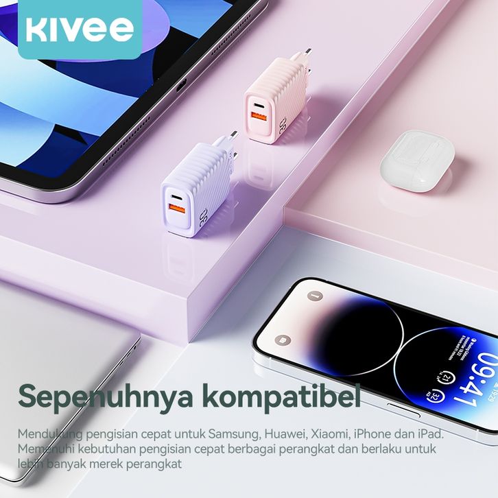 HOT KIVEE Charger iphone Fast Charging 30W Type C USB Dual Port For Samsung Xiaomi FIFO OPP Murah dan Berkualitas