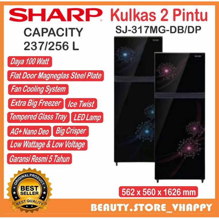 Kulkas sharp 2 pintu tanpa bunga es 256 liter SJ-317MG DB/ garansi resmi