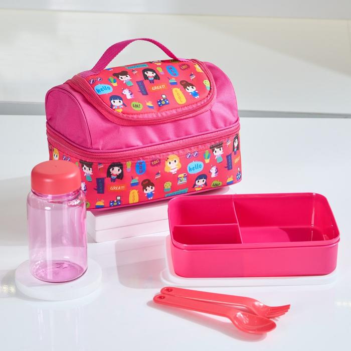 CPM new smiley premium set of 4 pcs pink /tas bekal makan tingkat anak dan terdapat stiker