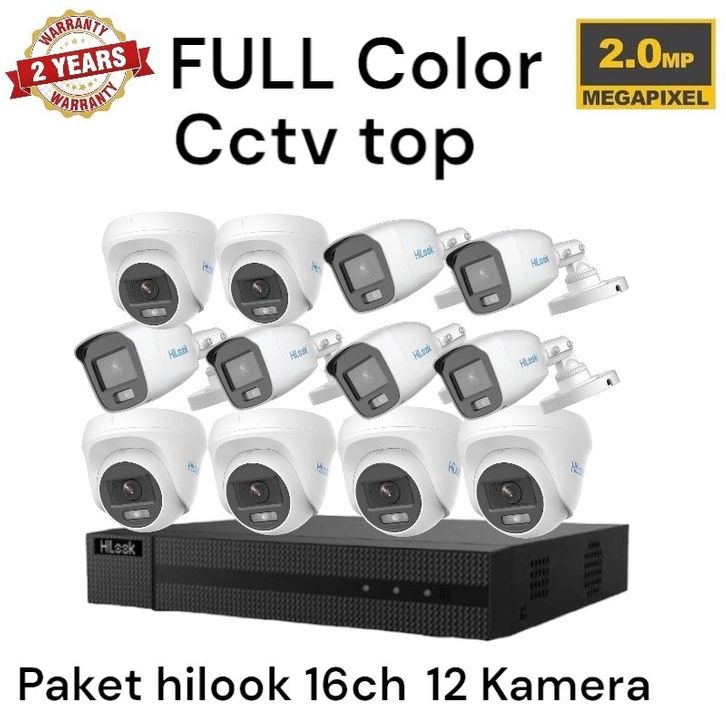 Paket Cctv Hilook 16 ch 12 Kamera 2mp Full Color 1080P By Hikvision Original