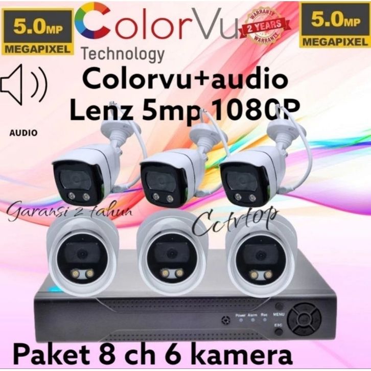paket cctv 8 ch 6 kamera colorvu audio lenz 5mp 1080P