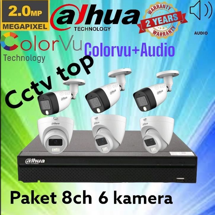 Paket cctv dahua 8 ch 6 kamera 2mp Colorvu Audio Full Hd 1080P ORIGNAL