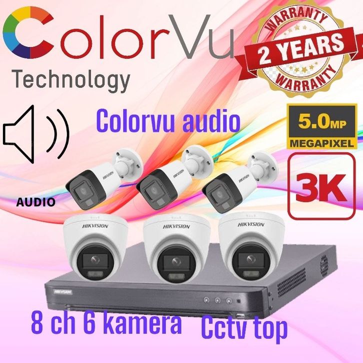 Paket cctv hikvision 8 ch 6 kamera 5mp colorvu audio bluit mic