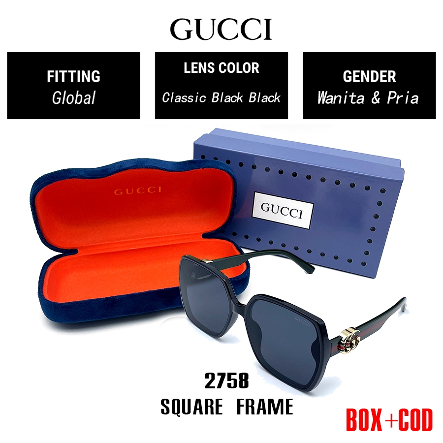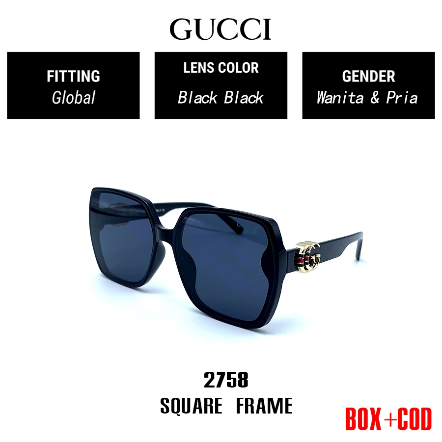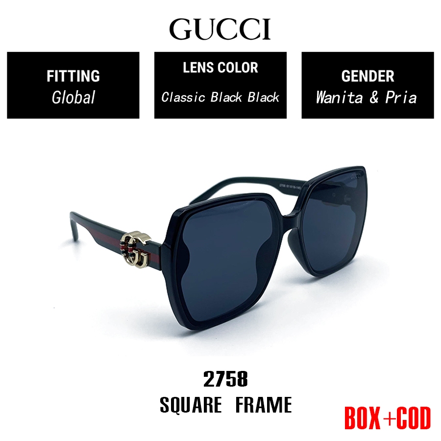 New Kacamata Hitam Gucci Sunglasses2758 Black Grey Classic Black 100 PERSEN original uv pria dan wanita