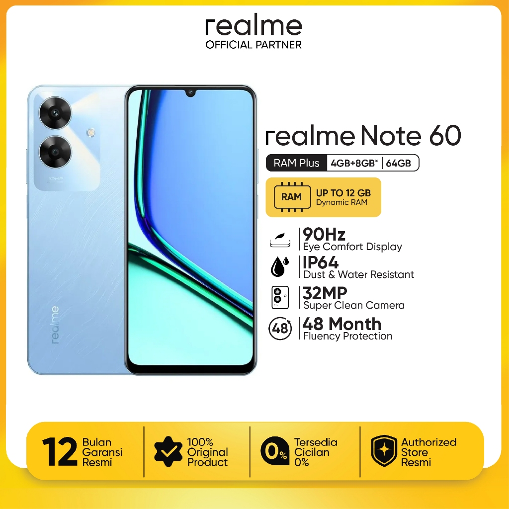 realme Note 60 4GB+8GB|64GB (ArmorShell™ Protection | TÜV Rheinland | 32MP Camera| 48-month Fluency | IP64 Dust & Water