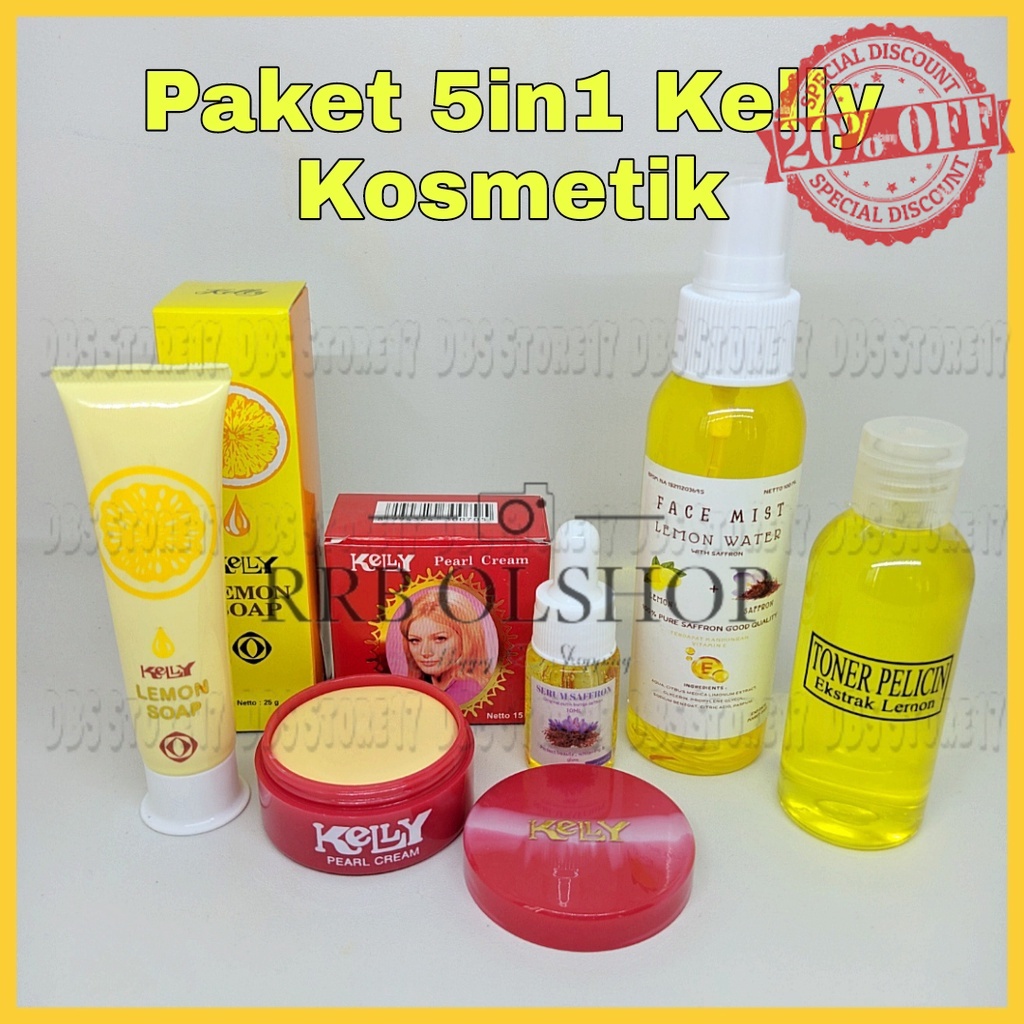 DBS _ Paket 5in1 Kelly Kosmetik ( Cream Kelly 15gr + Kelly Lemon Soap 25gr + Serum Saffron + Spray Face Mist + Toner Pelicin )