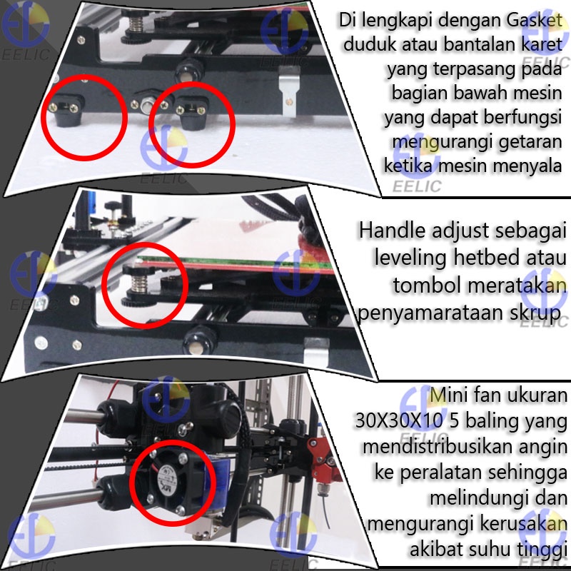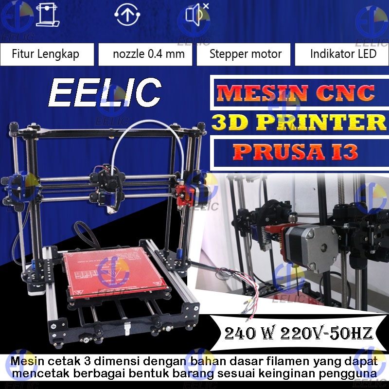 EELIC TDP-222ALI3 Mesin cnc 3D printer prusa i3 power 240 watt 220v-50 hz dengan lubang filament 1.75 mm nozzle 0.4 mm