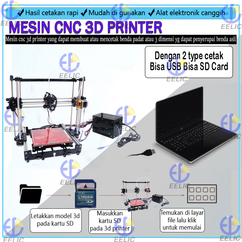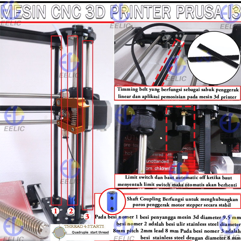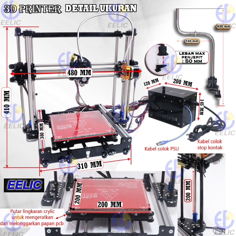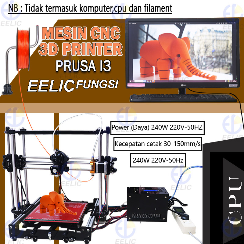 EELIC TDP-FS01 Mesin cnc 3D printer prusa i3 power 240 watt 220v-50 hz dengan lubang filament 1.75 mm nozzle 0.4 mm leng
