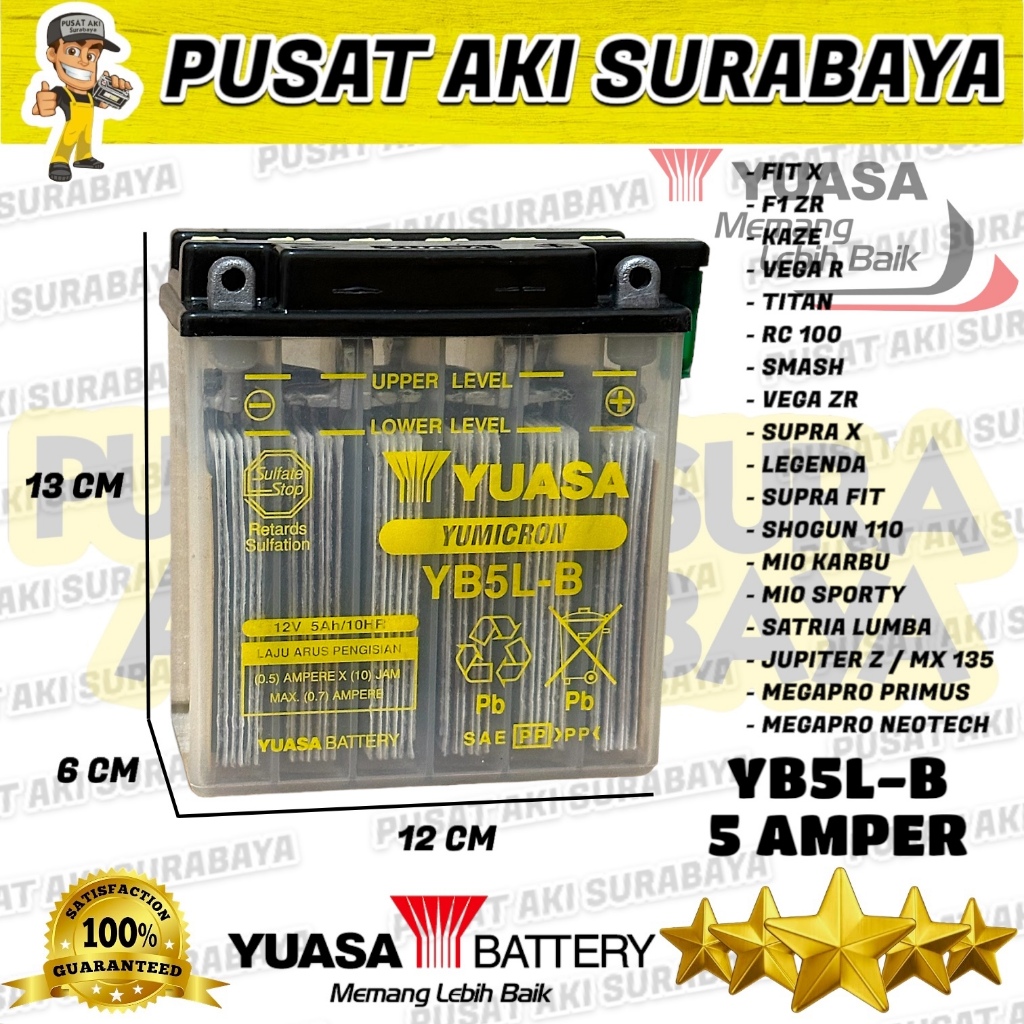 YUASA YB5LB 5 12 VOLT 5 AMPER ACCU MOTOR MIO SPORTY GRAND LEGENDA JUPITER BURHAN MEGAPRO KAZE VEGA TITAN SMASH GT6A MTX5AL