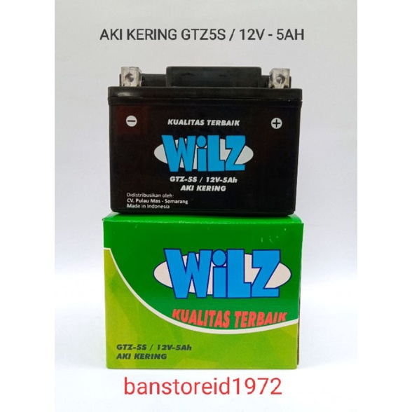 Aki Accu Kering Motor WILZ GTZ5S - 12V - Beat , Vario Karbu , Supra X 125 , Mio J , Soul GT , Vixion , Revo , Blade