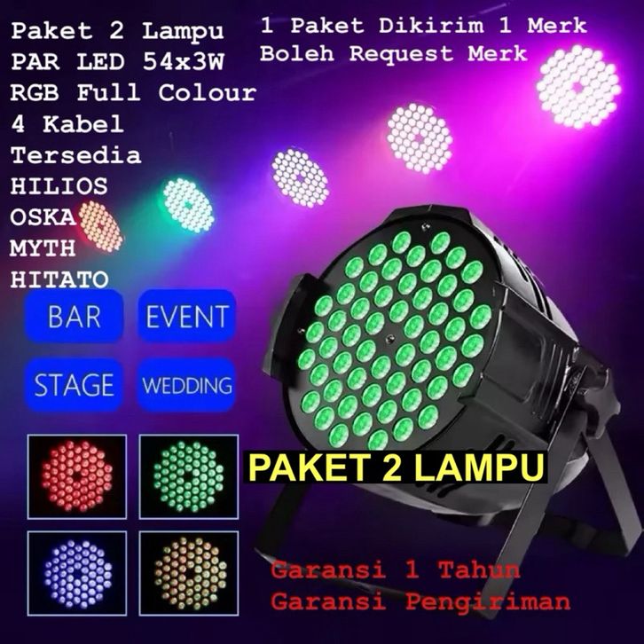 PAKET 2 LAMPU PAR LED 54 x3 Watt Full Colour Lampu Panggung Full Colour RGBW