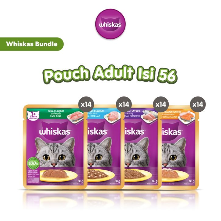 BEST SELLER Whiskas Makanan Kucing Basah Pouch Dewasa 809r - Isi 56 - Rasa Tuna - Chicken Salmon - Ocean Fish - Macka