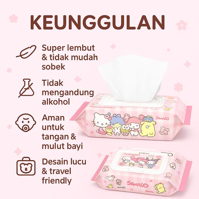 Tissue Basah Sanrio Baby Wipes 50 Sheets Tisu Hemat