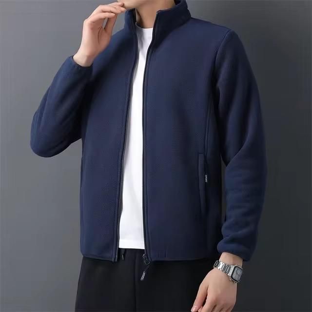Jaket Polar Tebal untuk Pria Wanita Cardigan Windproof Hangat Sweatshirt Blazer Outer Casual - HITAM M