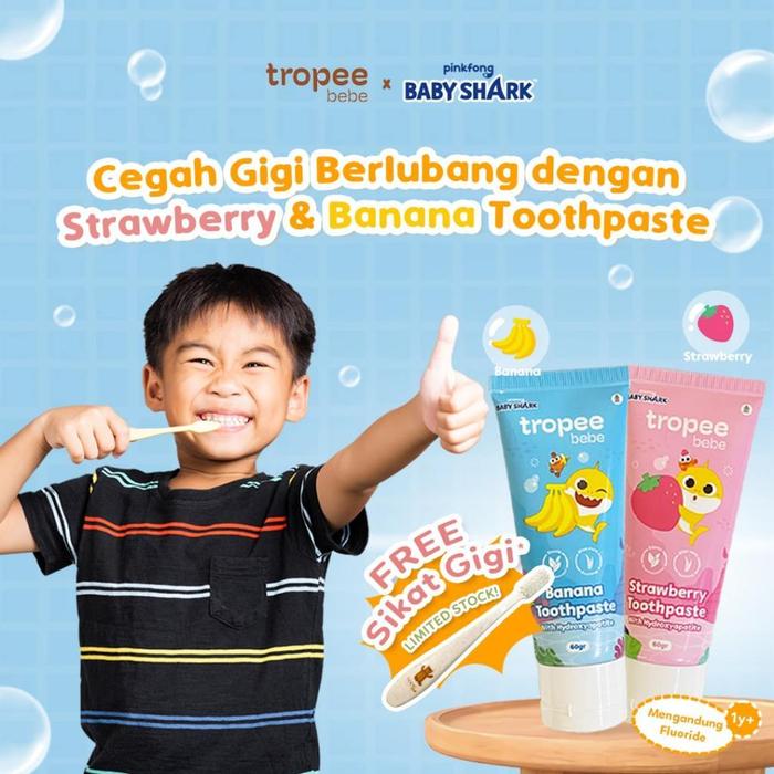 Tropee Bebe x Pinkfong - Toothpaste 60gr Pasta Gigi Odol Anak Strawberry / Banana