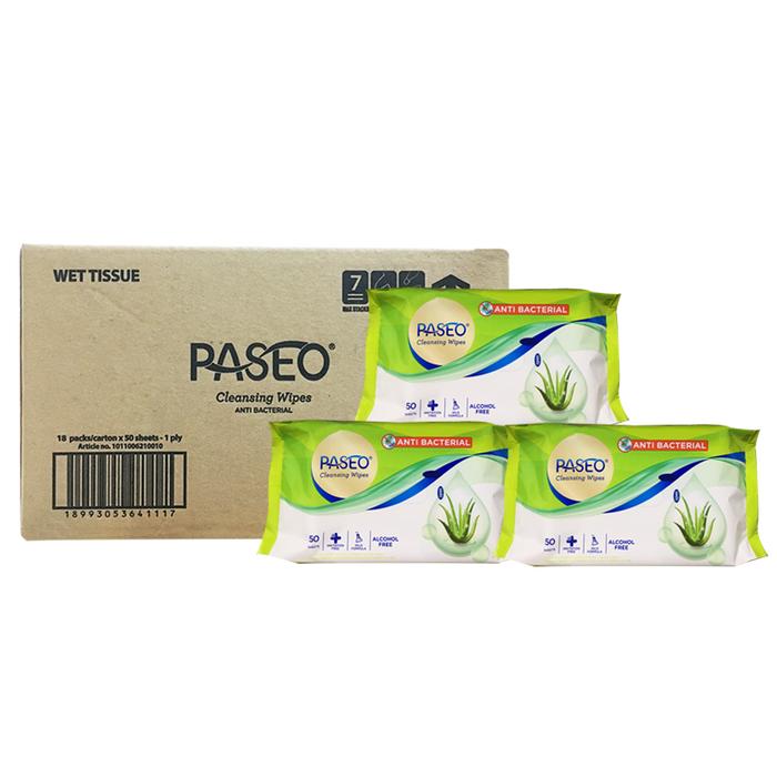 ( GROSIR 1 DUS ) Tissue Paseo Cleansing Wipes Anti Bacterial 50 Sheet / Tisu Tissu Basah 50s isi 18 PACK