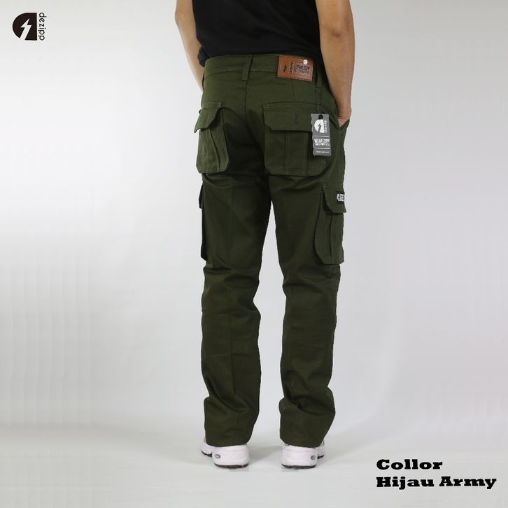 Dezipp Original Celana Cargo Panjang Pria Warna Hijau Army Slimfit Size 28 - 42 BY ORIGINAL PRODUCT