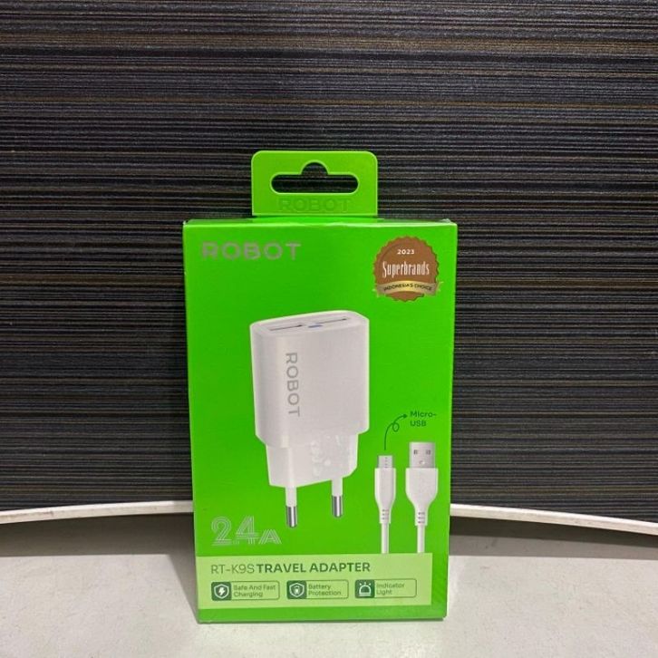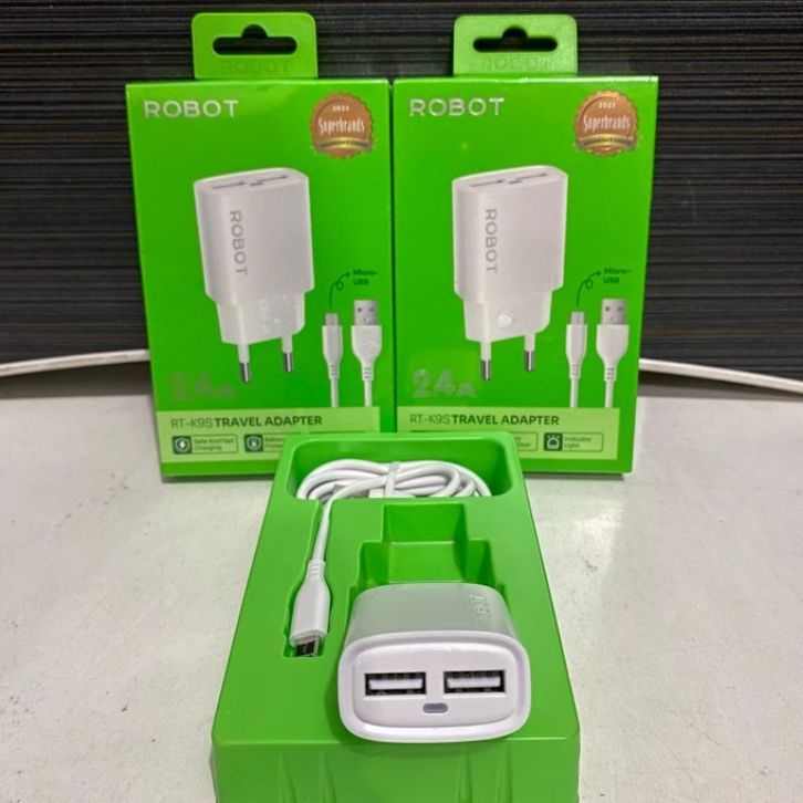 ROBOT RT-K9S TRAVEL ADAPTER ⚡Safe And Fast Charging With Data Cable Mikro⚡2.4A