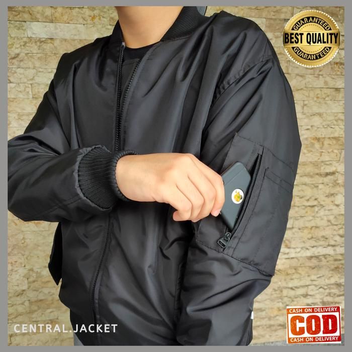 Jaket Bomber Pria Bolak Balik - Jaket Bomber Parasut Taslan Waterproof - Hitam Lotto L