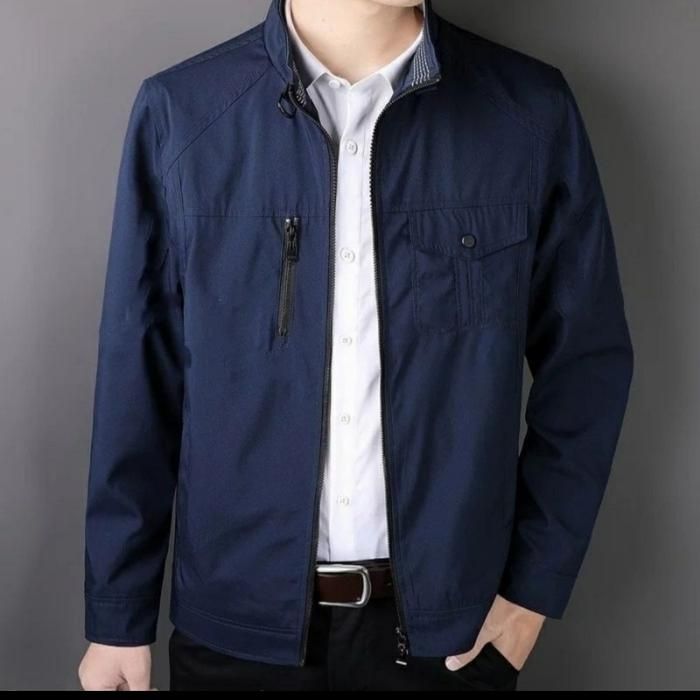 jaket pria jaket ter laris/jaket elegan bahan katun American DERIL - biru Dongker 5XL