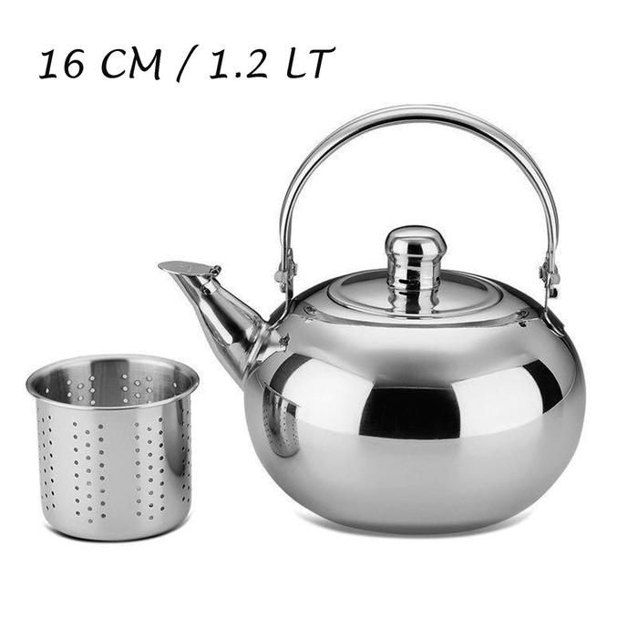 Teko Stainless Bulat Dengan Saringan 1.2L Tea Pot Ceret Air Panas Teh