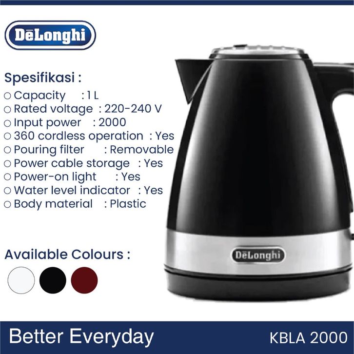 Terbaru DELONGHI - KETEL ELEKTRIK / PREMIUM ELECTRIC KETTLE - KBLA 2000 - GARANSI RESMI 1 THN TERLARIS