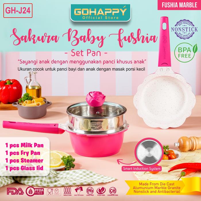 [FLASH SALE] PANCI SET GOHAPPY Sakura Baby Pan Pink GHJ24P Peralatan anak bayi cookware set